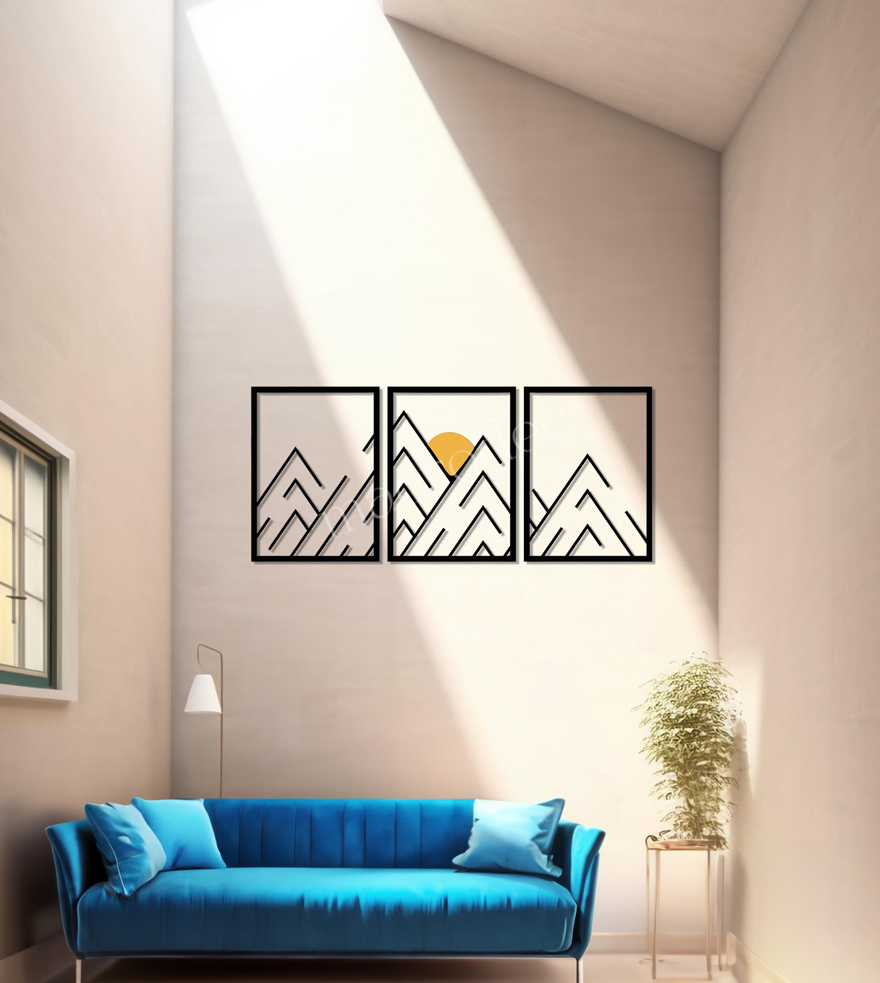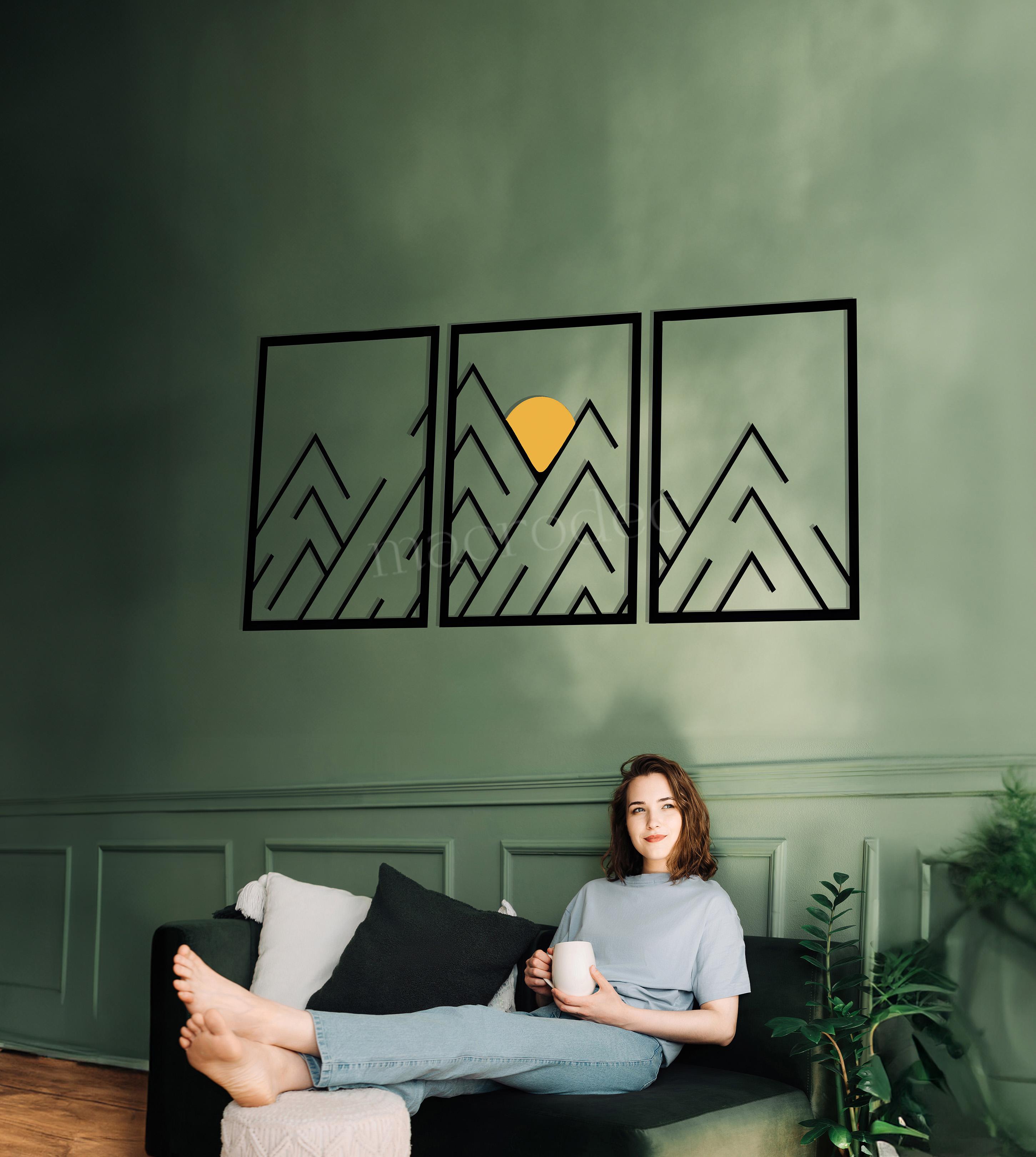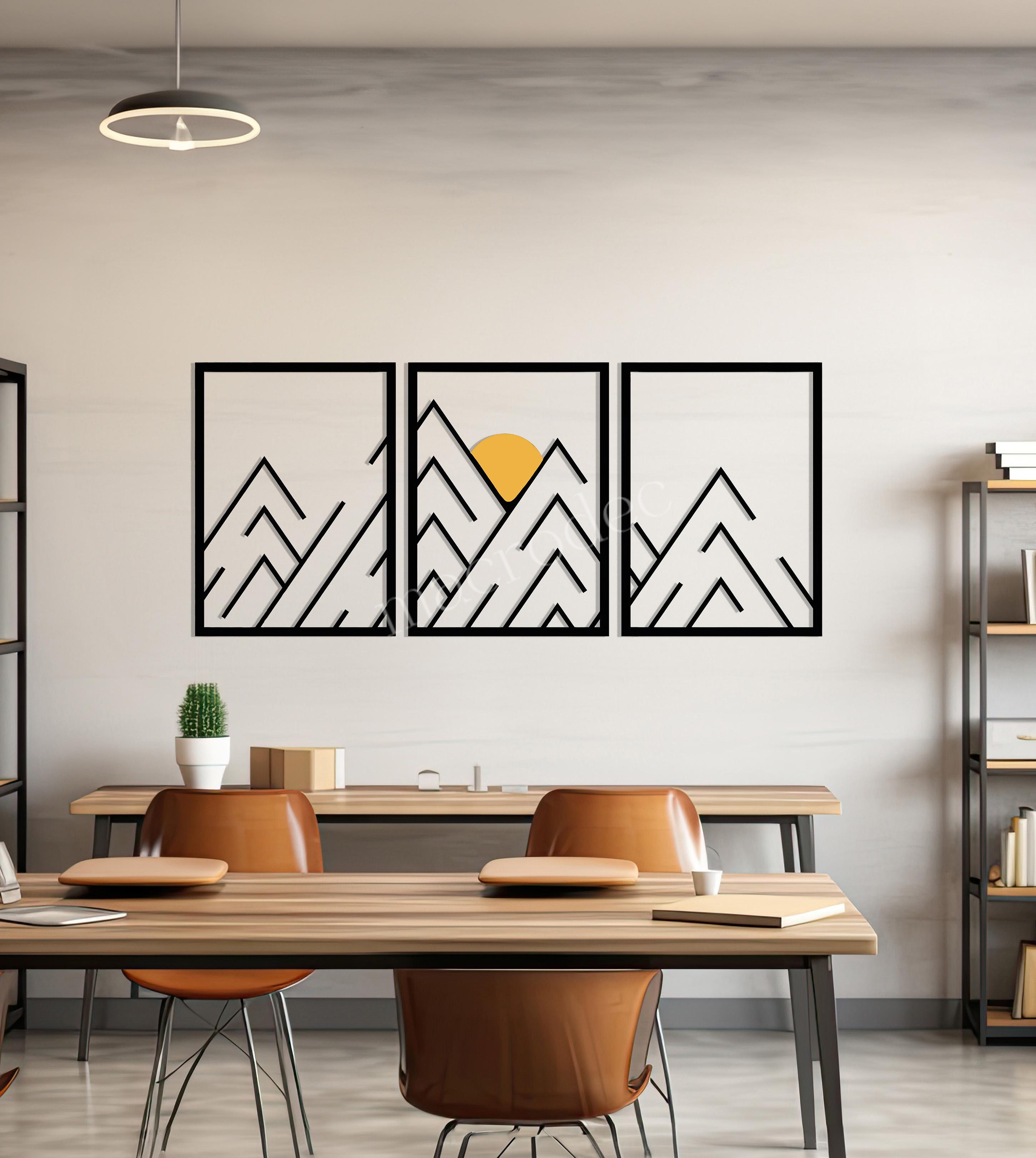 Doğanın huzurunu modern çizgisel bir estetikle buluşturan İlk Işık Metal Tablo, üç parçadan oluşan yapısı ve minimalist dağ silüetleriyle mekânlara sakin bir enerji katar.