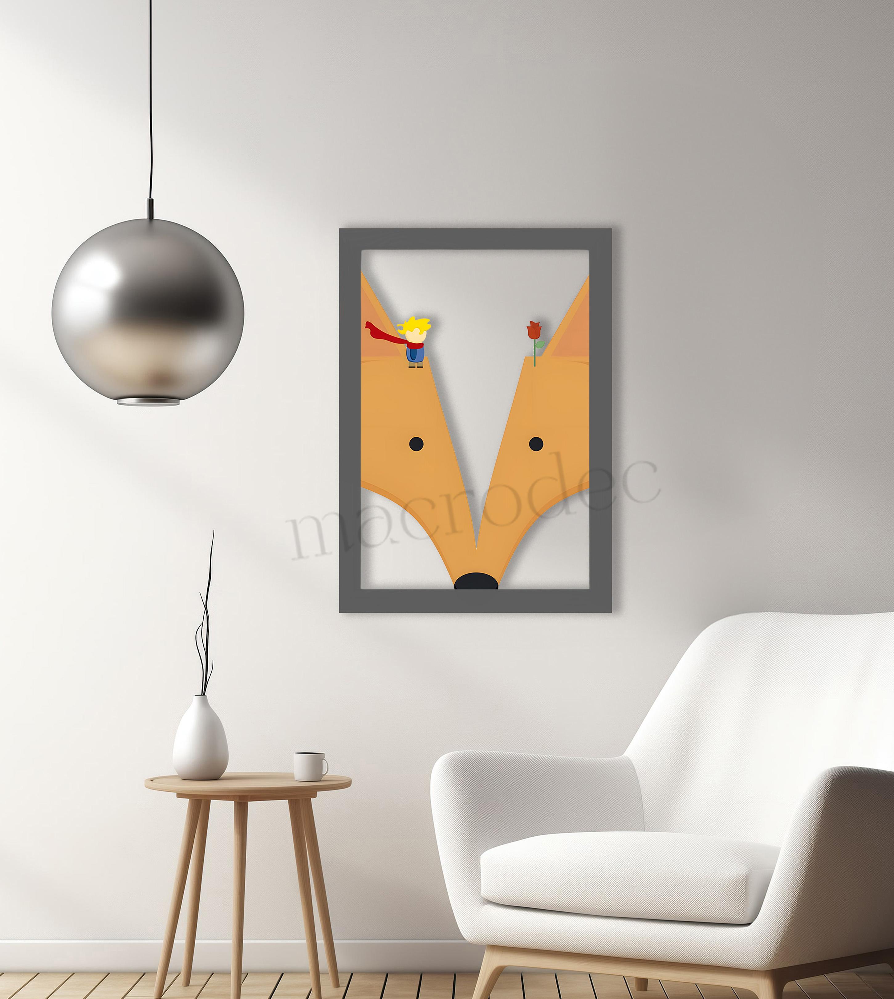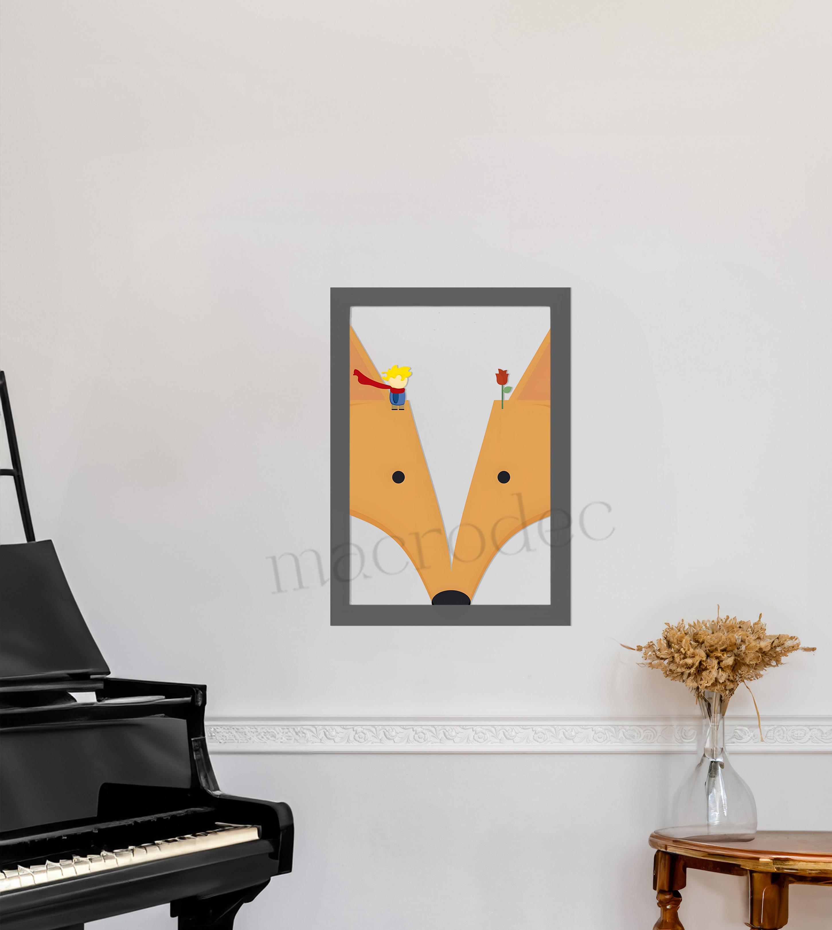 Efsanevi dostluğun sade ama güçlü ifadesi: “Küçük Prens ve Tilki” metal tablo.