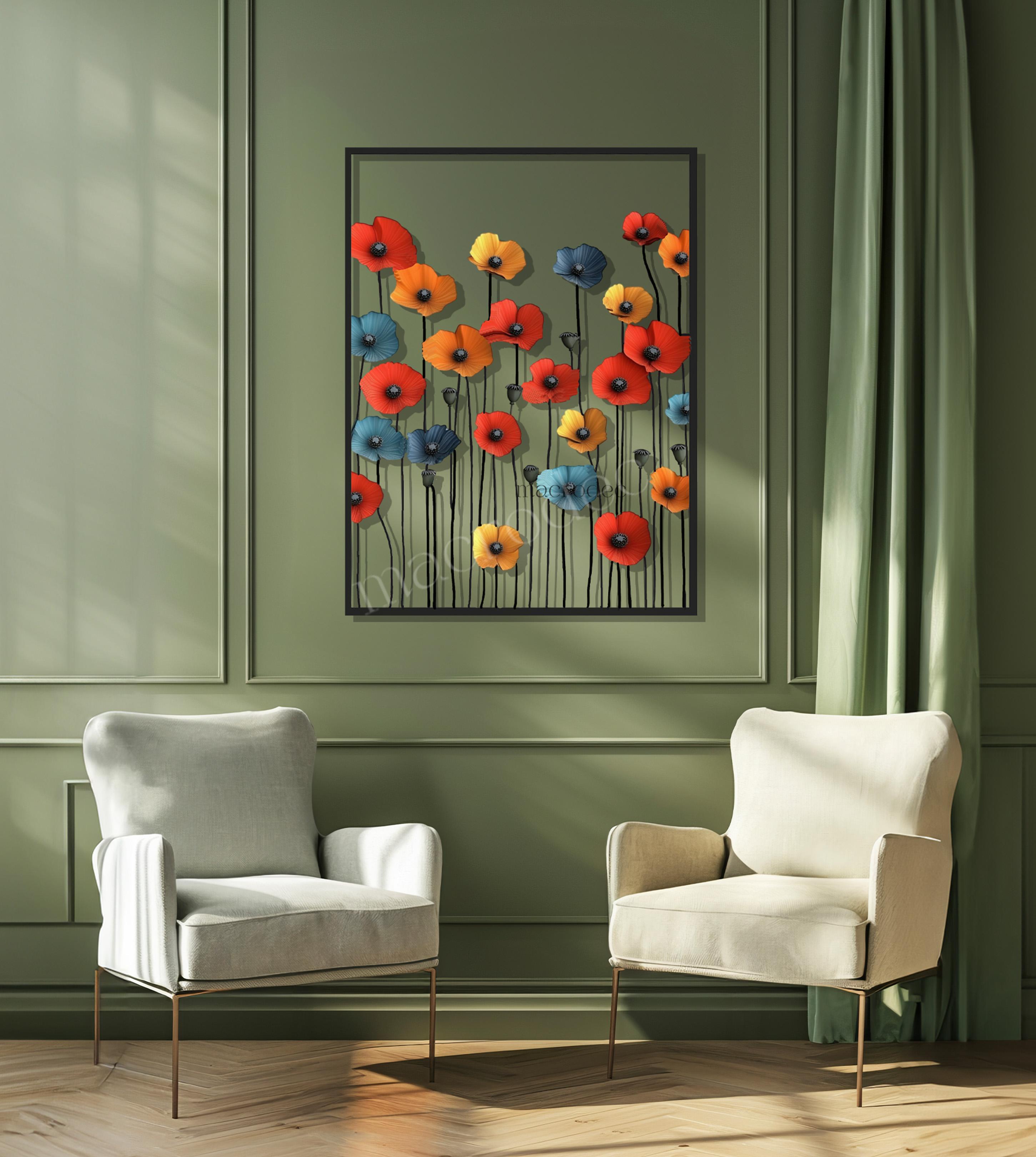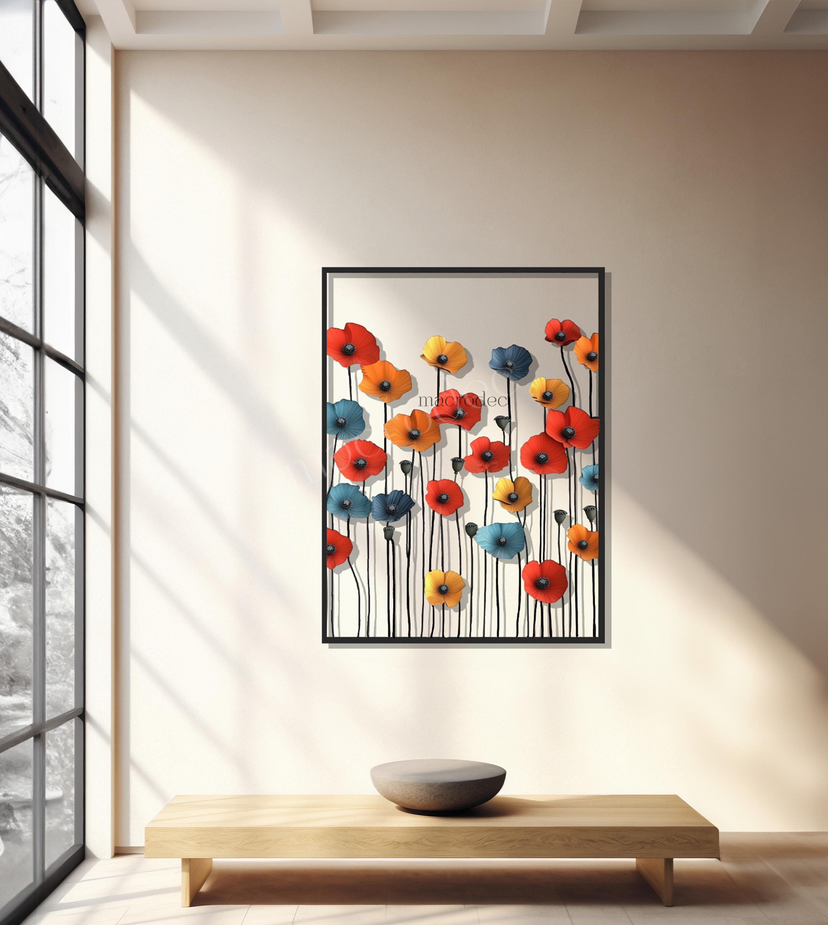 Canlı gelincik çiçeklerinin enerjisini modern bir metal işçiliğiyle buluşturan Renkli Gelincikler metal tablo, yaşam alanlarına tazelik ve pozitif bir atmosfer kazandırır.