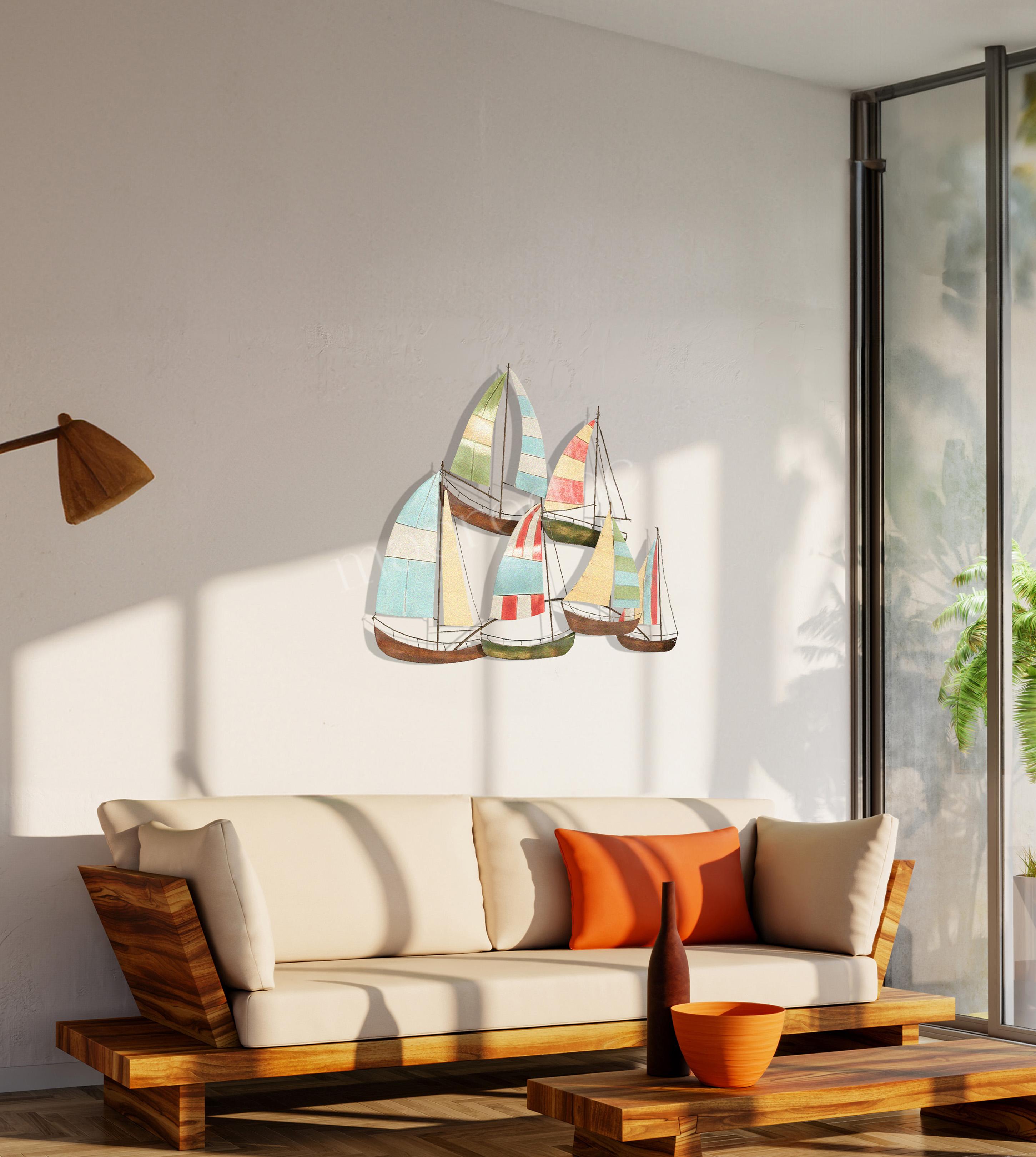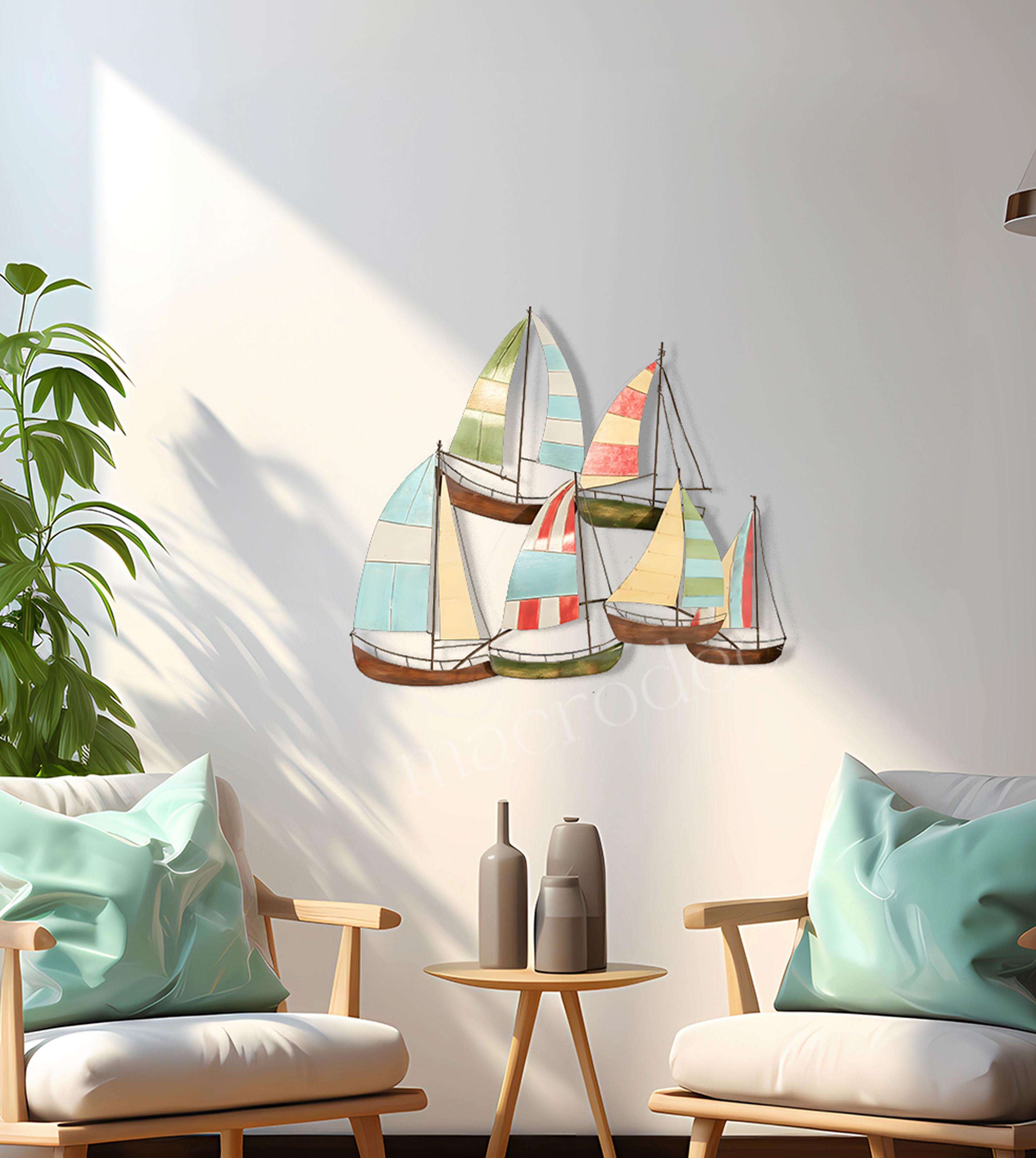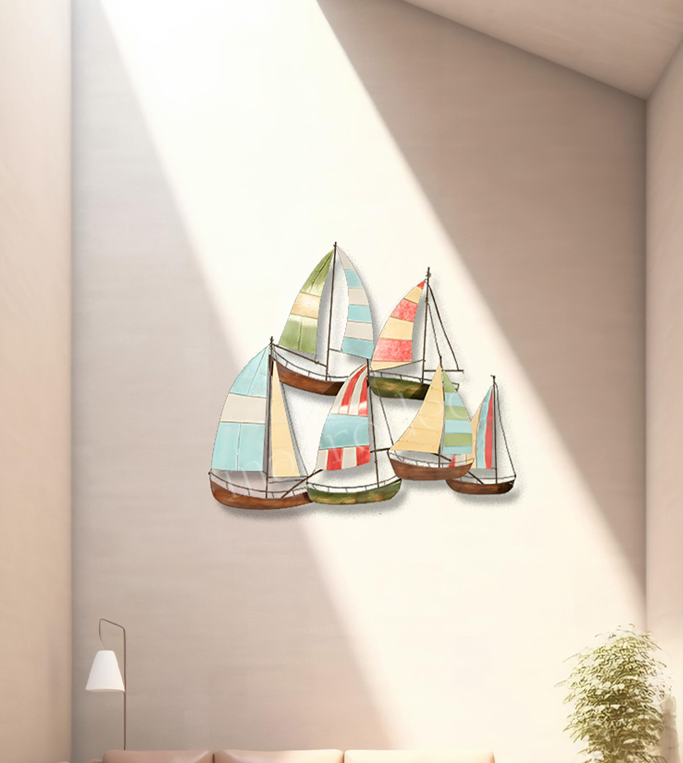 Rüzgârın özgürlüğünü ve denizin huzurunu duvarlarınıza taşıyan “Renkli Yelkenler” metal tablo, yazın enerjisini evinize getirir. Pastel tonlarda tasarlanmış yelkenli figürleri, ferah ve modern iç mekânlara sıcak bir Akdeniz dokunuşu kazandırır.